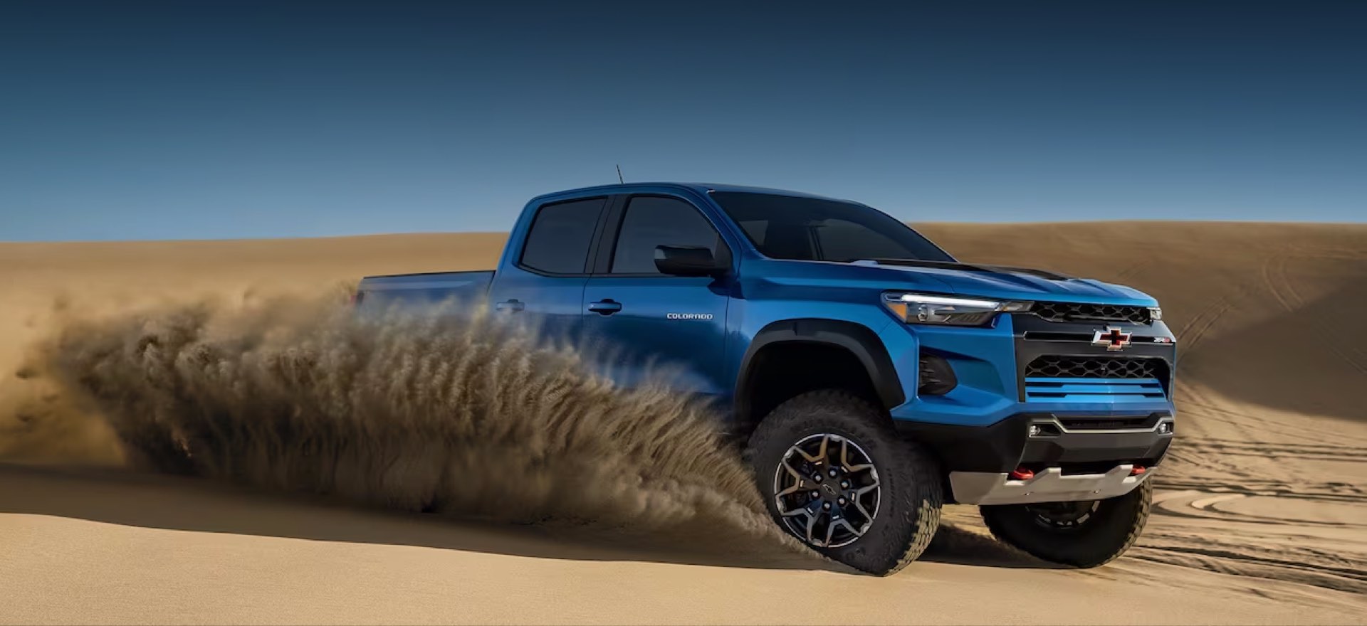 El paquete Colorado ZR2 Bison Edition agrega una variedad de mejoras al Colorado estándar, incluido un nuevo parachoques delantero y trasero con puntos de recuperación integrados. Las luces auxiliares todoterreno añaden una capa adicional de iluminación cuando es necesario, y el soporte vertical para llantas de repuesto montado en la plataforma mantiene las llantas montadas de forma segura y separadas del suelo.